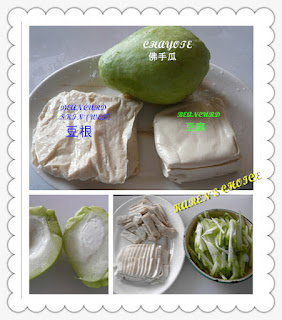 STIR FRY COMBINATION CHAYOTE WITH BEANCURD SLICES & SKIN (VEGETARIAN) - 豆腐豆根凉拌佛手瓜 (素食)