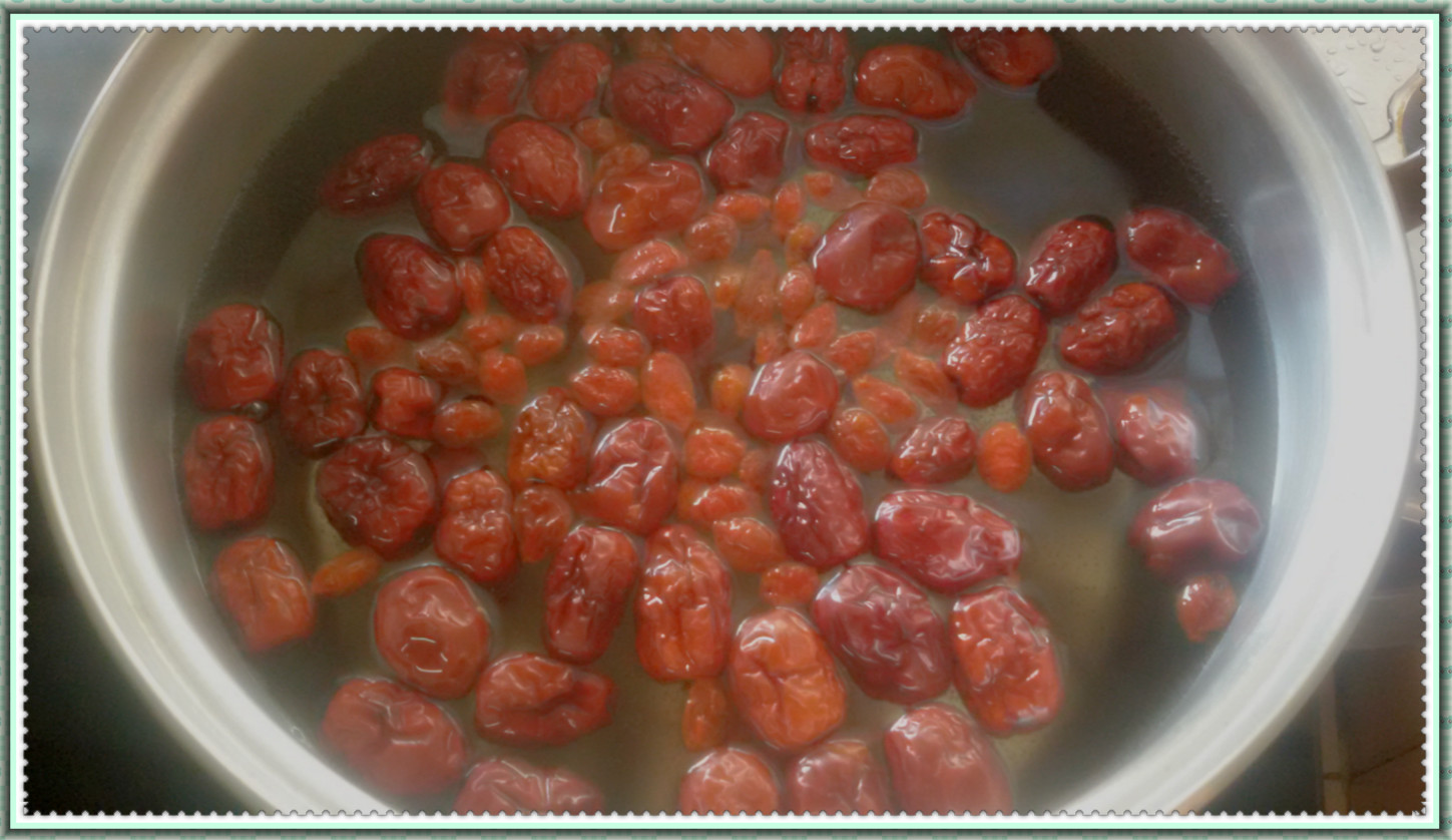 2. Just rinse clean wolfberry & dates. Put into the pot to boil for 5 mins.