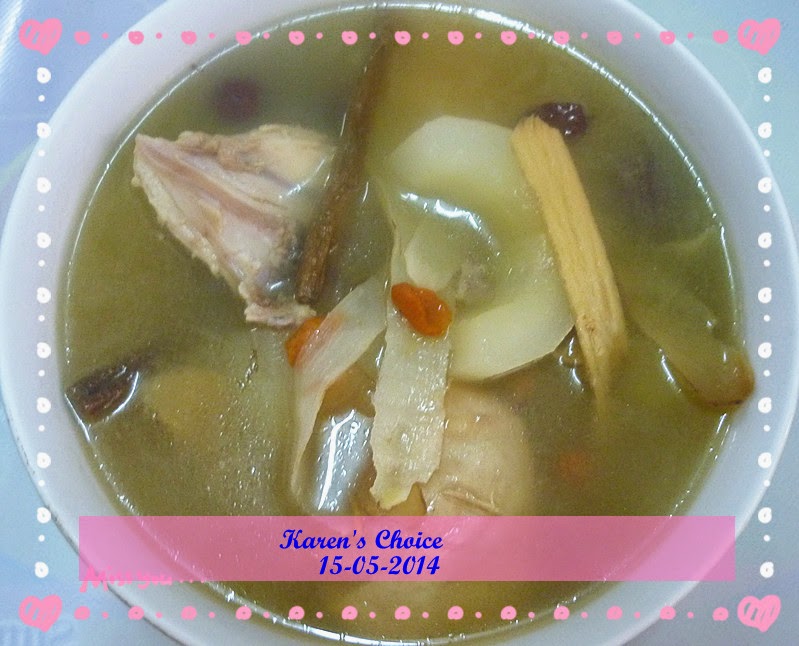 1. Heat a pot of 3 litre water. Add in the herbs and meat and bring