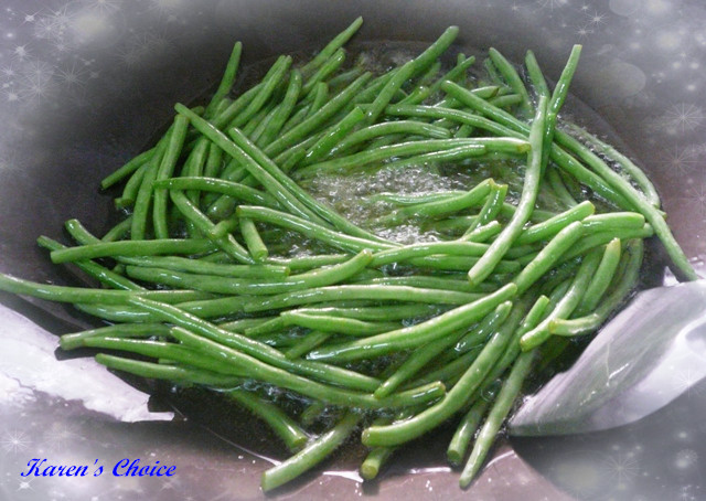 2. Fry the beans for about 5-7 mins. (About to cook). Then drained off all
