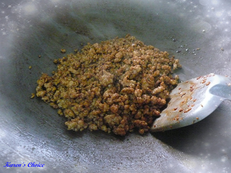 meat. Try to loosen the meat while stir frying till meat is cook.