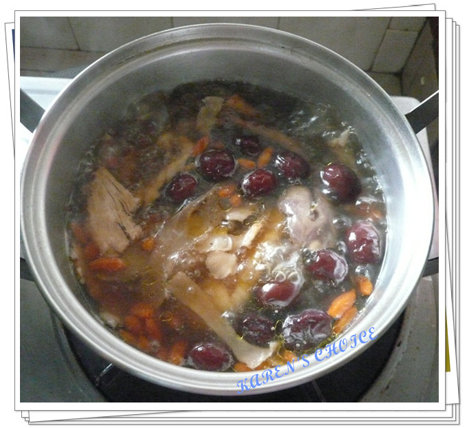 1. Firstly, heat a pot with water. Add in all the herbal ingredients