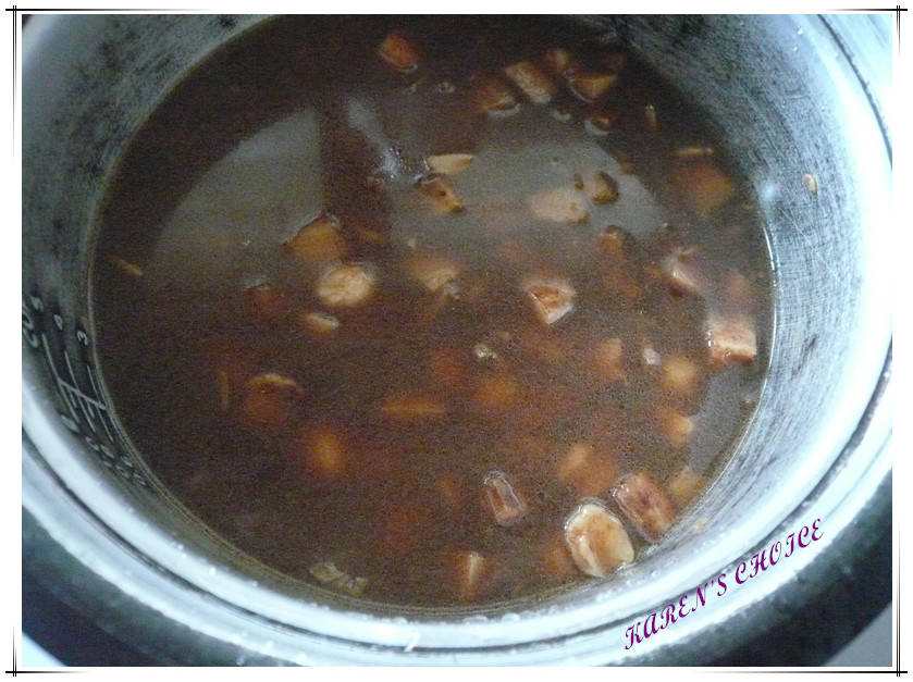 4. Off heat and transfer the mix ingredients into the rice cooker. Add in